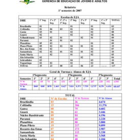 Levantamento do número de alunos inscritos na EJA no DF no 1º semestre de 2007.Equipe Portal2 de julho de 2025 Documentos levantamento alunos 1º-07 Baixar https://forumeja.org.br/wp-content/uploads/tainacan-items/1833/584368/levantamento-alunos-1o-07.doc levantamento alunos 1º-07 Baixar levantamento alunos 1º-07 levantamento alunos 1º-07 MetadadosTítuloLevantamento do número de alunos inscritos na EJA no DF no 1º semestre de 2007.AutoriaGTPA/DF - Fórum EJA/DFAssuntoEJA - Educação de jovens e adultos | EscolaOutros assuntosVagas EJAAno de PublicaçãoDécada de 2000 > 2007Local de publicaçãoBrasil > Centro-Oeste > Distrito Federal > BrasíliaDescriçãoLevantamento do número de alunos inscritos na EJA do DF no 1º semestre de 2007. Item anteriorEscolas que ofertam EJA – 2014 Próximo itemResumo de alunos inscritos na EJA no DF no 1º semestre de 2007
