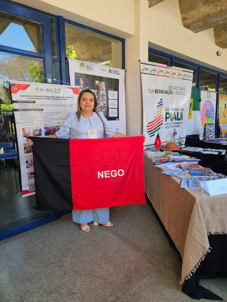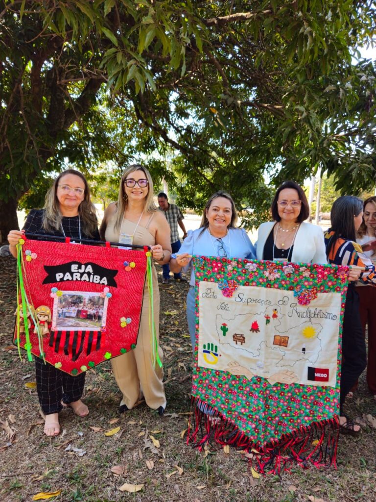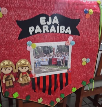 O estandarte da EJA Paraíba é uma rica representação cultural e identitária, elaborado com dedicação por uma artesã da EJA da Cidade de Patos.